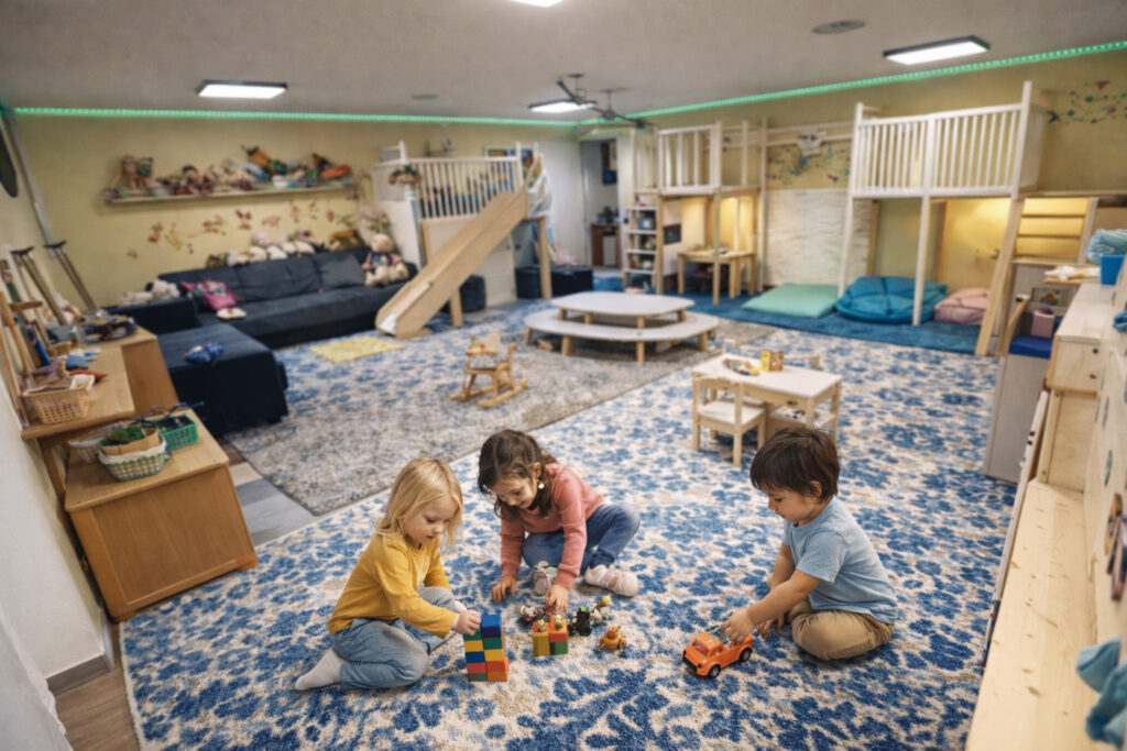 Helle Räume, natürliche Materialien und eine ruhige Atmosphäre schaffen ein Umfeld, in dem sich Kinder wohlfühlen können.